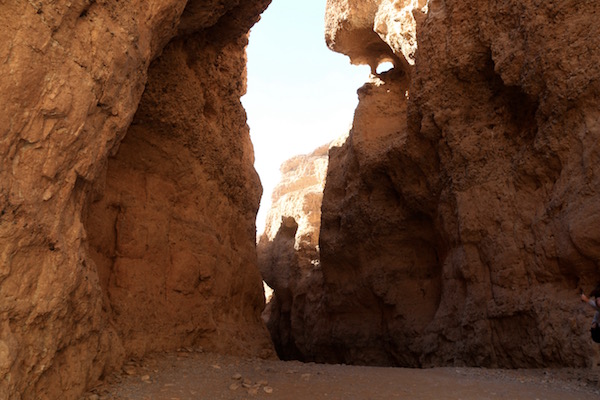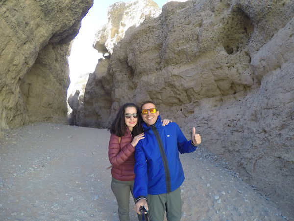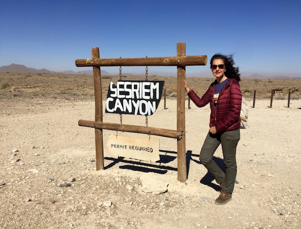 Mientras poníamos dirección al Cañón Sesriem, decidimos tomarnos el desayuno que nos habían preparado el lodge. El cañón Sesriem es una grieta en la tierra hecha por el río Tsauchab a lo largo de millones de años, con casi 1 km de longitud y 30 metros de profundidad. Bajamos por una pendiente algo resbaladiza y peligrosa, llegando al suelo de dicho cañón, trazado como un laberinto, es un lugar solitario, poco transitado, no hay vigilancia en el lugar. Allí permanecimos un buen rato haciendo fotografías, grabaciones y un poco el loco.