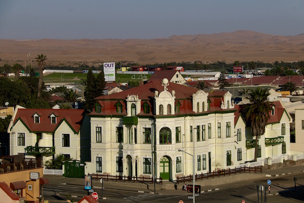 Acabada la visita, salimos por carretera hacia Swakopmund es una ciudad situada en la costa Atlántica de Namibia. Es la segunda ciudad más importante detrás de Windhoek, así como el puerto más importante del país. Destaca por su arquitectura de estilo colonial alemán. Hay una gran población alemana que regentea casi todos los negocios de la ciudad como: restaurantes, bares, hoteles, hoteles, actividades turísticas, etc. No tiene mucho que visitar, es más bien una zona vacacional para pasar unos días de relax. Habíamos leído que la ciudad no era muy segura y menos para pasear por ella de noche.