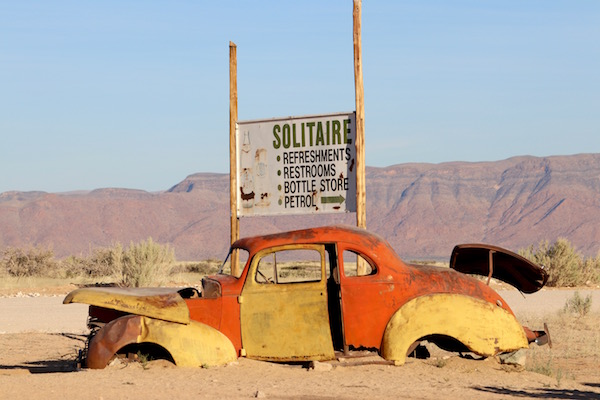Volvimos a bajar, está vez el vehículo necesitaba gasolina, nos acercamos hasta el Solitario, un lugar en medio de la nada, donde hay una gasolinera, una tienda, bar, un correo postal y para de contar. El paraje está decorado con coches abandonados.