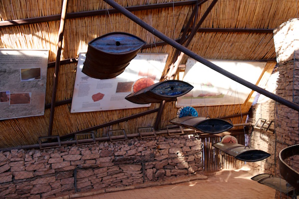 Volvimos al Lodge, teníamos cena, bajamos al comer y terminamos la comida, nuevamente volvimos a la habitación, estábamos cansados. Al día siguiente, desayunamos y acabada la comida, hicimos el check-out, abandonábamos el Lodge, íbamos hasta los Grabados Rupestres de Twyfelfontein una vez allí nos adentramos en el edificio, por cierto está hecho con materiales reciclados, hay una pequeña exposición de fauna y flora del lugar, tienda de recuerdos, bar, baños, etc.