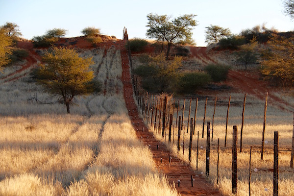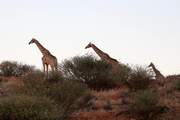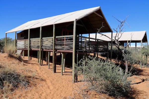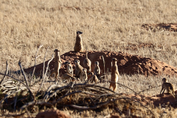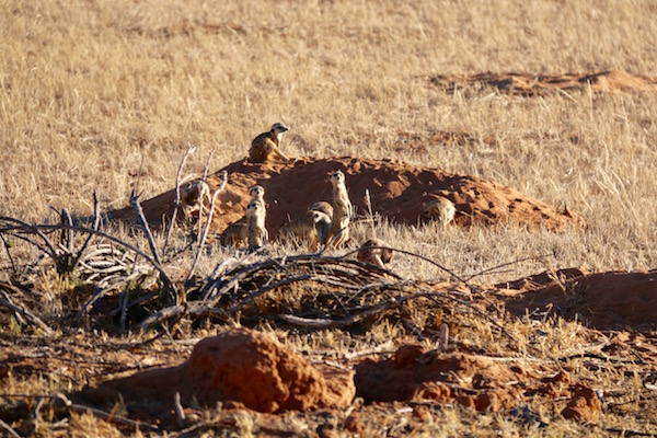 Regresamos al Namib Desert Lodge, para descansar, esta vez nos saltamos la cena, estábamos con la comida en la boca. Al día siguiente, desayunamos y abandonábamos el lugar, con un mal sabor de boca nos íbamos sin haber visto Dead Vlei, pero en fin, ¡Qué íbamos a hacer! Cogimos la carretera para ir hacia el desierto de Kalahari, nuestro último punto de visita en este viaje por Namibia. El Desierto de Kalahari es una sábana semi árida que tiene un área de 500 km del norte al sur, donde hay manadas de antílopes, ñus, gacelas, jirafas, avestruces, suricatos, etc., llegamos Lodge el Suricate Kalahari tented camp, donde pasaríamos dos noches. ¡Ojo!, en la estancia no aceptan pagos con tarjeta de crédito, y moneda que no sea de Namibia. Hicimos el check-in, y nos fuimos almorzar, donde nos sirvieron un plato de carne de impala acompañado de verduras.