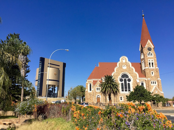 Llegamos hasta la Iglesia de Cristo es una basílica que fue edificada entre 1907 y 1910, en conmemoración de las guerras entre alemanes e indígenas. Diseñada en estilo neogótico con detalles modernistas, el emperador Guillermo II, donó las vidrieras al templo. Se abrió al culto el 16 de octubre del 1910. La entrada es gratuita. Situado en el centro de Windhoek, en la Avenida Robert Mugabe.