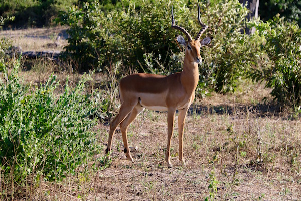 El impala pertenecen a la familia de los bóvidos, herbívoros, se alimentan de arbustos, hiervas, hojas de acacias, frutos. Pueden pesar 80 kg y tienen una longitud de entre 1,3 y 1,8 metros. El macho posee cuernos rectos y anillados, la hembra no tiene, sus depredadores son leones, leopardo, guepardos, hienas y cocodrilos. Estos animales cuando están en peligro emiten señales acústicas, olfativas y visuales. Su gestación tiene una duración de entre 180 y 200 días, y solo nace una cría por parto.