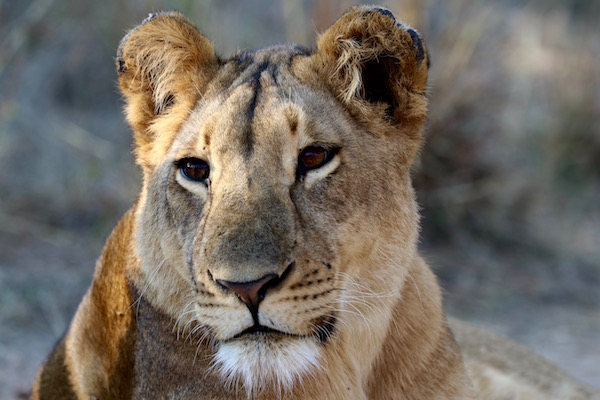Continuamos unos metros conduciendo hasta detenernos, Sergio avisó que había visto por los prismáticos a un león, nos detuvimos. ¡Era cierto!, desde los lejos se podía divisar. No estaba solo, había una leona con él. Como todos sabemos… el “rey de la selva es el león”, el rey no se había dejado ver por el lugar. Este animal mamífero carnívoro y depredador, es el felino más grande detrás del tigre, pesando hasta 300 kg. Los machos poseen una melena que varía dependiendo del tamaño y color que tenga, siendo el color más claro y de menos pelaje cuanto más joven es el animal, se oscurece y tiene más pelaje cuando el león envejece. La leona no desarrollan melena, su rugido no es tan potente como el que realiza el león. Bueno, vamos a decir algo bueno de ellas son las que cazan, raras veces es ayudada por el león, en ocasiones cuando la presa es muy grande. Se alimentan de impalas, cebras, ñus, búfalos, ciervos, gacelas, etc., y pocas veces cazan a hipopótamos, jirafas o elefantes, si lo hacen es porque están heridos o son crías. La gestación de este animal dura unos 110 días, dando a luz entre 1 a 4 crías. Quién no ha escuchado la frase “Está madre defiende a su hijo como una leona” estos animales tienen un comportamiento muy protector con sus crías. Permanecimos más de 40 minutos, para ver si conseguíamos que cambiaran la postura y se aproximaran más hacia nosotros, el tiempo mereció la pena. Aquí os dejamos las fotografías, eso sí, de la leona, el león pasó de nosotros.