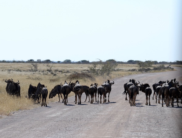 Seguimos cruzando el parque, los caminos son algo polvorientos y mucho más cuando pasa un 4×4 y nos adelanta. Tuvimos que detenernos para dar pasó a una manada de ñus, aquí los animales son los que mandan y marcan el ritmo. ¡Son los reyes de la carretera!, ¡Os lo podemos asegurar!