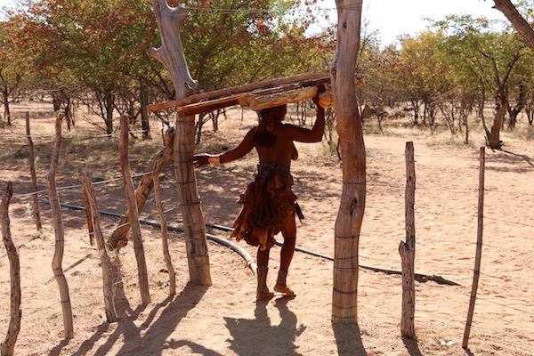 Al llegar a una de estas aldeas, es cierto que no viven en un poblado en sí, porque en cada recinto vive una sola familia o como máximo dos. Eso si, de 30 a 50 miembros e incluso muchos más, la cuenta la perdimos. Pudimos apreciar sus condiciones y forma de vida, visitamos el colegio, sus viviendas en el interior, etc. La aldea principal es llamada Onganda, sus viviendas, con forma circular, edificadas con ramas, paja y una mezcla sólida de barro y excrementos de vaca. El jefe siempre es el hombre. Por la mañana los hombres y jóvenes adolescentes varones, están trabajando realizando el pastoreo con las vacas, y no se encuentra en la aldea.