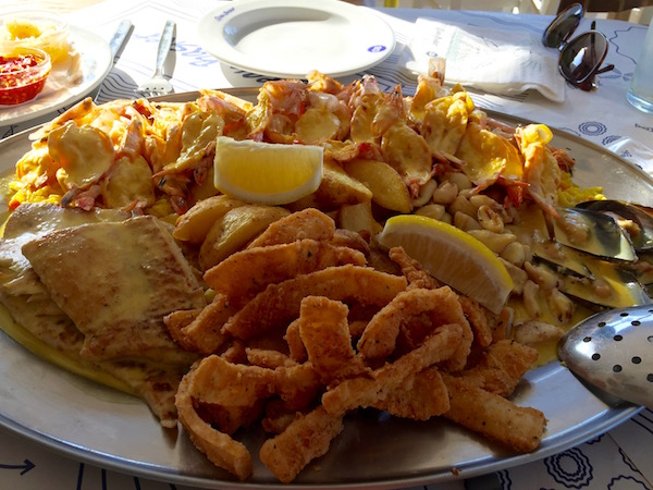¡Tocaba hora de comer!, mientras regresábamos hasta el embarcadero, nos sirvieron unos aperitivos salados, ostras, pescados fritos, refrescos, agua mineral, vino de Sudáfrica, y de postres unos platos con pasteles.