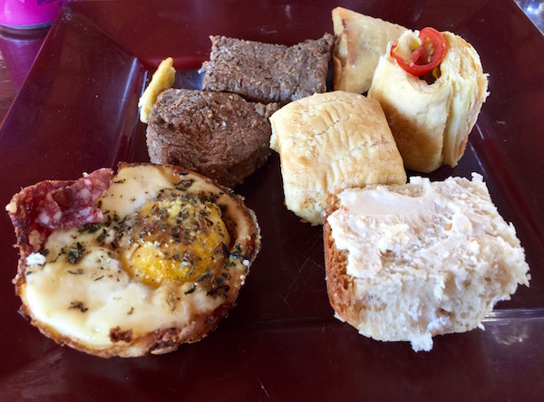 Llegó el momento de hacer una parada para almorzar, ¡No nos habíamos dado cuenta y se nos había ido la mañana!, fuimos hasta una zona habilitada para comer un picnic. Comimos unos trozos de carne de ternera, unas pequeñas ensaimadas saladas, y un huevo envuelto con salchichón y una porción de pastel, de bebida agua y té.