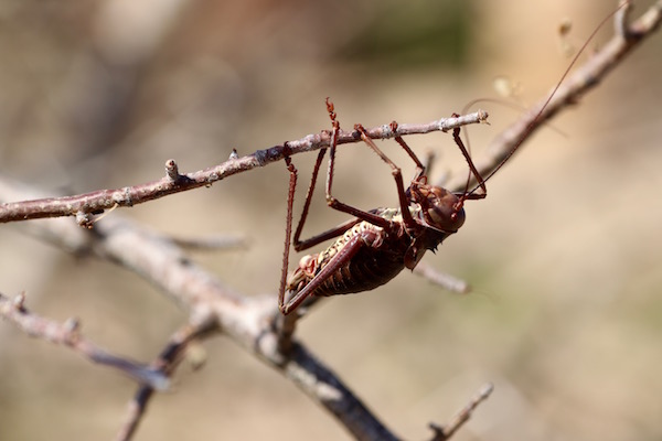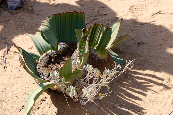 En la zona encontramos la planta welwitschia mirabilis, este vegetal milenario, su floración se produce cada 100 años. Sergio se encontró en la rama de un árbol un insecto, ese saltamontes.