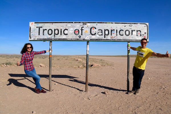 Abandonábamos la zona para tomar la carretera y dirigirnos al desierto de Namib, por el camino paramos en la Línea Imaginaria del Trópico de Capricornio, bajamos e hicimos la típica fotografía, volvimos a subir al vehículo, continuando el trayecto.