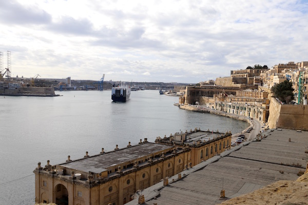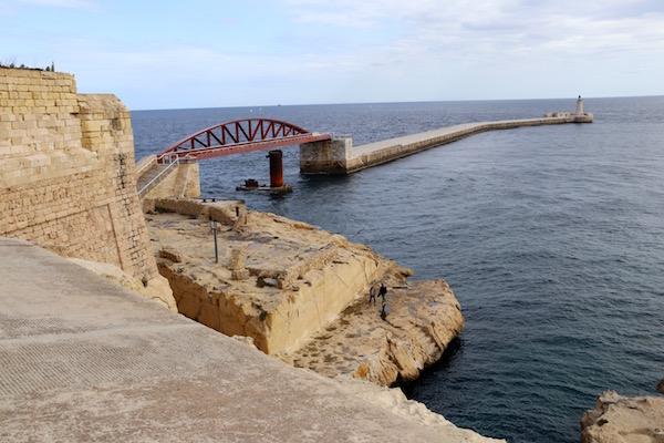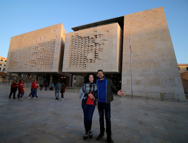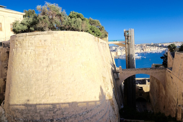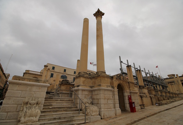 Vimos las Murallas de la ciudad de La Valeta cruzamos el puente, lo primero que pudimos ver fue el edificio del Nuevo Parlamento de Malta construido entre 2011 y 2015 en hormigón, caliza y acero, de estilo moderno, fue diseñado por Renzo Piano, tiene una superficie de 23.000 m², fue inaugurado el 4 de mayo del 2015, antes se encontraba desde el 1921 hasta el 1976 en la Cámara de los Tapices del Palacio del Gran Maestro. En 1976, la antigua armería de dicho palacio acogió al parlamento hasta su actual localización.