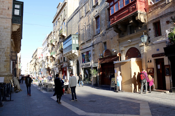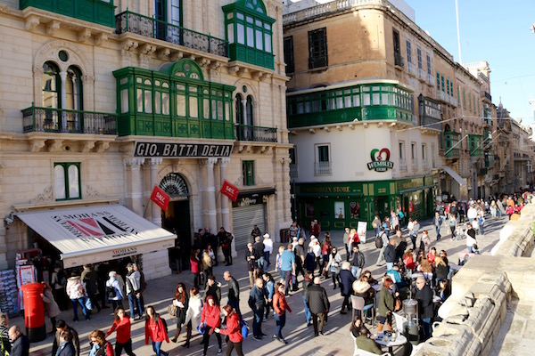 Pasamos nuevamente por donde se encuentra la fuente de Tritón, ¡la recuerdas!, hablamos de ella el día anterior, a continuación nos adentramos en la Calle República es la arteria principal de la ciudad de La Valeta, es peatonal en casi todo el tramo, en ella hay edificios de gran interés como el museo Nacional de Arqueología, la iglesia parroquial de Santa Bárbara, la casa de Rocca Piccola, entre muchos otros edificios, paralela a ella se localiza la Calle Merchants, es una vía comercial, donde contratas una gran cantidad de tiendas, bares, restaurantes, cafetería, etc. Aunque Malta, al no poder tener posibilidad de crecer geográficamente, parte de la vida comercial y de ocio de la isla se ha ido desplazando hasta el norte, a las localidades de Sliema y St Julian’s.