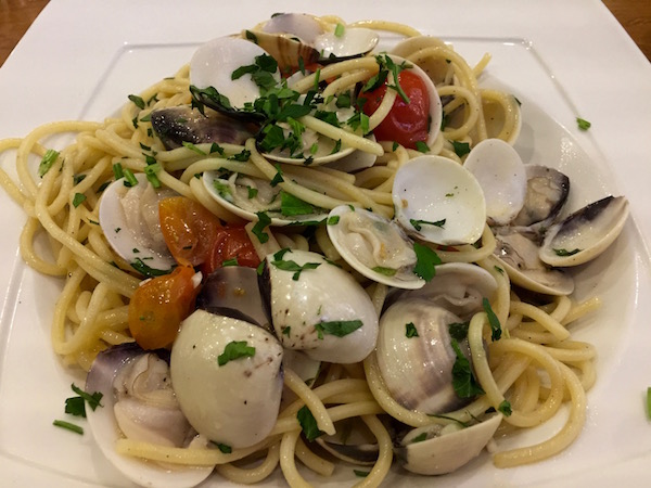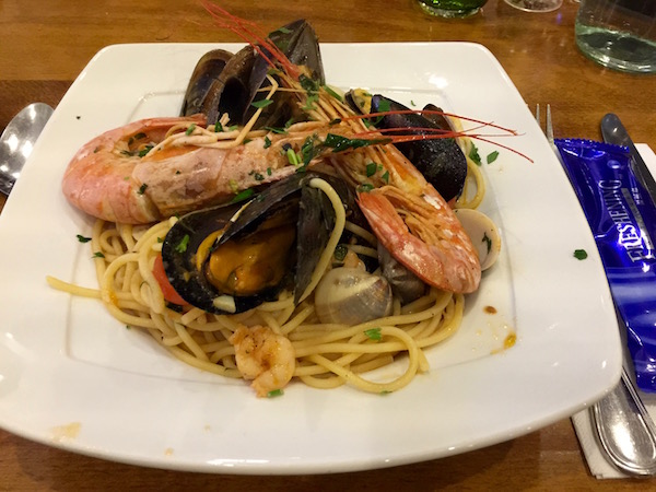 Era el momento de ir a cenar, nos fuimos hasta el Restaurante City Lounge, donde pedimos un plato de espaguetis con almejas, para el otro fue un plato de espagueti con frutos de mar, de bebida una botella de agua mineral. La comida estaba muy buena, ofrece cantidad y el servicio fue rápido. Pagamos un total de 33,90 €. La dirección es 131 Old Theatre Street.