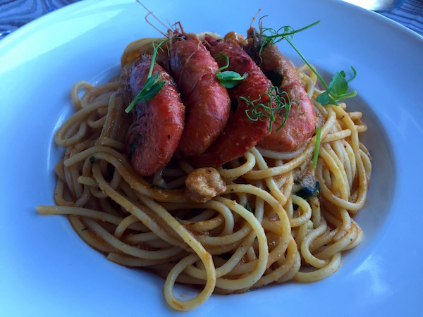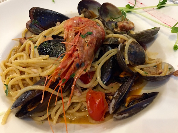 Nos fuimos a cenar al Restaurante Nostra Padrona donde pedimos como entrante pulpo, de plato principal una mariscada, y para el otro fue un plato de espagueti frutos de mar, de bebida una botella de agua mineral. Pagamos un total de 57,30 €. La dirección es 87 Xatt Is-Sajjied.