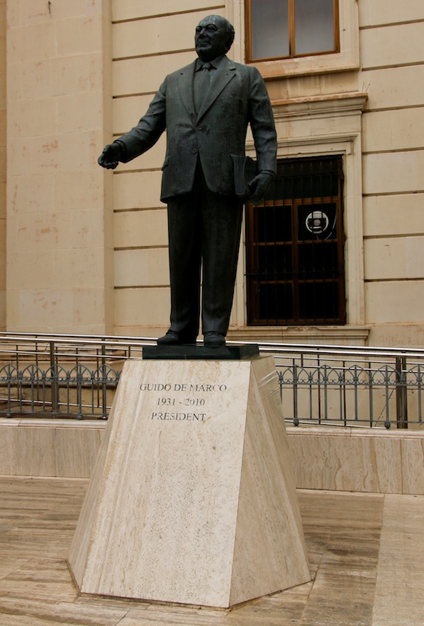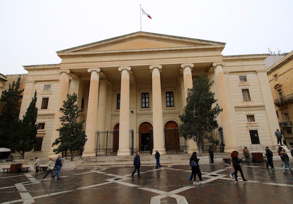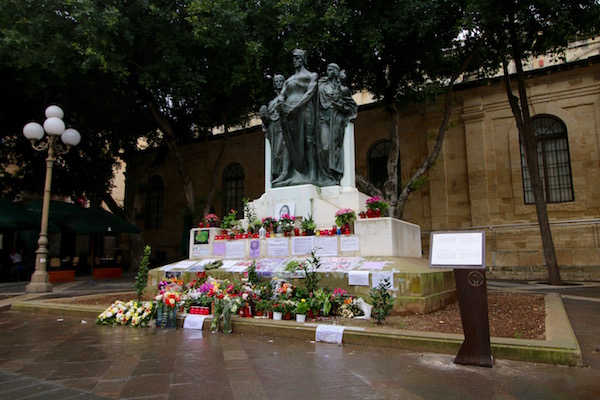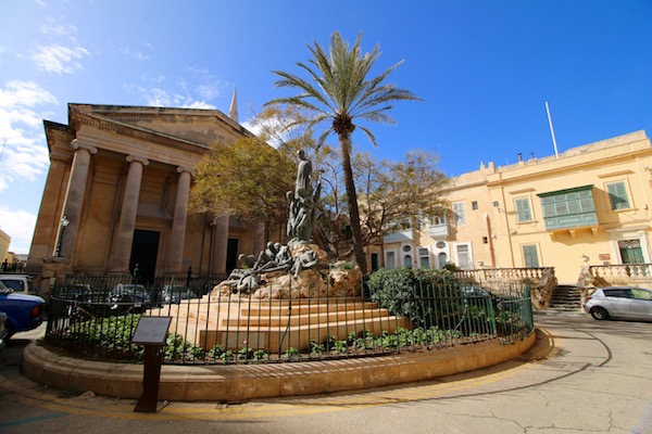 Detrás del monumento está la Catedral de San Juan y enfrente el Palacio de Justicia, se construyó entre 1965 y 1971 de estilo clásico, su fachada está formada por un frontón sostenido por ocho columnas, este edificio hoy alberga el palacio de Justicia, a un lado de su fachada se puede observar una escultura realizada en bronce representado a Guido de Marco, político que fue presidente de Malta durante 1999-2004.