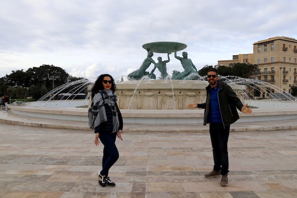 Lo primero que pudimos ver fue la Fuente de Tritón fue inaugurada en 1959 creada por Vicent Apap, la escultura hace homenaje a los diferentes oficiales de la Commonwealth que colaboraron en las batallas de la Segunda Guerra Mundial y que no fueron enterrados tras haber perdido la vida, la escultura es una representación de tritones (mitología griega, mitad humano y mitad pez) por la noche es iluminada. Situada en la Plaza de La Puerta, a pocos metros de la terminal central de autobuses.