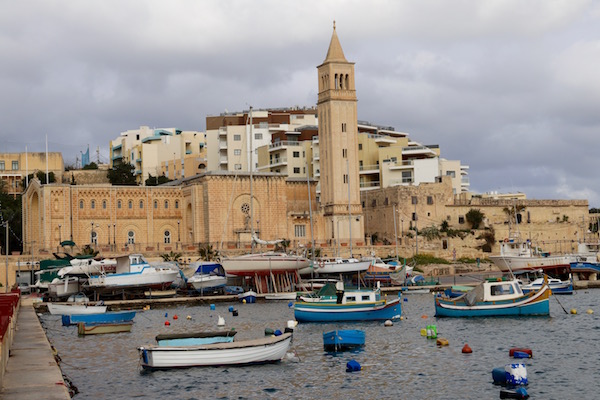 Terminamos de visitar la zona, compramos en un puesto callejero una rama de plátanos y unas manzanas, este sería nuestro almuerzo, había que continuar con las visitas, nos gastamos un total de 5 €. Fuimos hasta la parada de autobús para coger uno con dirección a la estación central de La Valeta, una vez allí bajamos de él y subimos nuevamente en otro para ir hasta el pueblo de Marsascala es una localidad de Malta que tiene una superficie de 5,4 km², antiguo pueblo de pescadores, es llamativo por su centro turístico costero donde vimos embarcaciones maltesas. Alrededor de la bahía hay restaurantes, bares donde poder comer pescado fresco, aunque como nosotros fuimos en temporada baja, la mayoría permanecían cerrados. La Iglesia Parroquial de Santa Ana se empezó a construir en 1895, en el siglo XIX fue ampliada, en su interior acoge pinturas de Santa Ana obra del pintor Felipe Venuti. Cuando nosotros visitamos la zona permanecía cerrada.