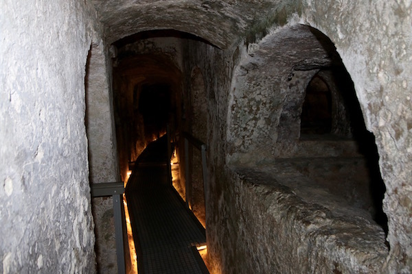 Acabada la visita en el museo, pasamos a un patio donde hay una serie de entradas a los hipogeos, cada uno tiene un panel con una pequeña explicación, los pasillos subterráneos están iluminados. No es un lugar muy recomendable para personas con movilidad reducida por los escalones, y no es apto para claustrofóbicos, está prohíbo entrar con tacones. Los pequeños nichos que hay en las paredes era la zona dedicada para enterrar los cuerpos de los niños fallecidos. También vimos dos grandes salones subterráneos, aquí era donde las familias festejaban comidas conmemorativas. La entrada cuesta 5 € por persona, incluye audioguía, niños y adolescentes entre 12 a 17 años es de 3,50 € por cada uno, niños entre 6 a 11 años pagan 2,50 € por cada uno, los niños menores de 5 años el acceso es gratuito. El horario de visitas es de lunes a domingos de 9:00 h a 17:00 h. Permanece cerrado el 24, 25, 26 de diciembre, el 1 de enero y el Viernes Santo. Se encuentra en la localidad de Rabat, la dirección es Calle San Agatha.
