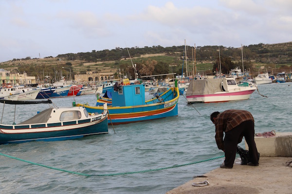 Volvimos a la parada de autobús para subir en el autobús que nos llevaría hasta el pueblo de Marsaxlokk situado en la costa sur de Malta, este pueblo es mucho más turístico que el anterior que hemos nombrado, es un pequeño pueblo marinero que destaca por su bahía donde hay luzzus (barcos malteses) pintados de colores llamativos decorados con los ojos de Isis, ha sido herencia de los fenicios y griegos, se dice que estos ojos traen buena suerte y protegen durante su travesía a los pescadores. Esta localidad posee un bonito paseo marítimo, mercadillo, en sus terrazas, restaurantes, bares es una buena opción para comer pescado fresco. Si tienes la oportunidad de visitarlo en domingo por la mañana, podrás ver como se realiza el mercado de pescado. ¿Sabías qué la mayor parte del pescado que se consume en Malta procede de aquí?