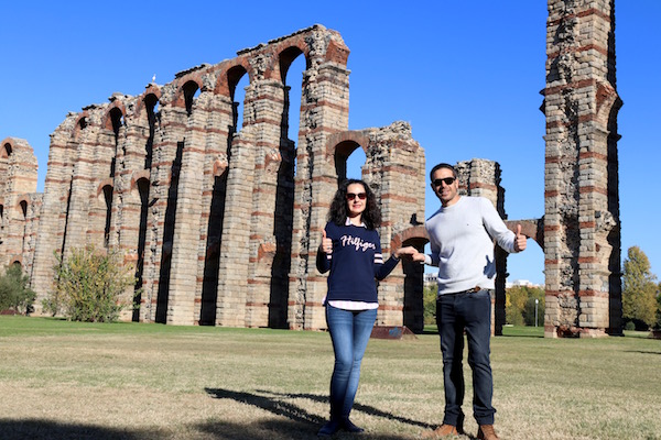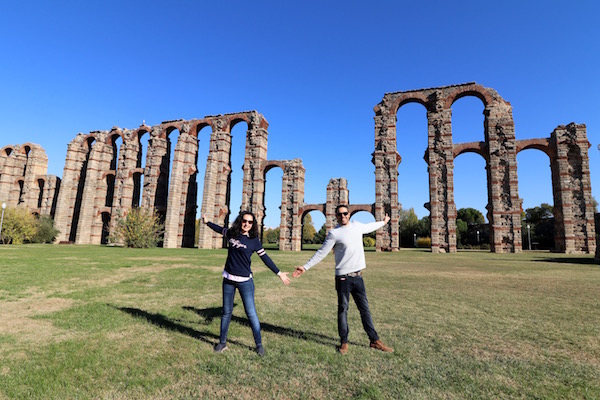 Fuimos en busca del Acueducto de los Milagros, se cree que fue construido en la época de Augusto a finales del siglo I a.C. esta obra tuvo la función de transportar el agua desde el embalse de Proserpina hasta Mérida. Edificado en ladrillo y granito, desgraciadamente hoy en día solo se conserva la mitad de los arcos de la edificación original, tan solo se mantienen en pie 827 metros de longitud y con una altura de 25 metros, llegó a tener más de 10 km. El acceso a él es gratuito, abierto todos los días. Está en la Avenida de Vía de Plata s/n.