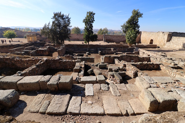 Terminado el almuerzo, continuamos con las visitas, a pocos metros del lugar está la Zona Arqueológica de Morería, es una parcela de 14 m², donde se encuentra uno de los yacimientos arqueológicos urbanos más grande de la península Ibérica. Este yacimiento está incluido en el conjunto arqueológico de Mérida, declarado Patrimonio de la Humanidad por la Unesco. En el pasado ha sido un barrio romano donde se fue reconstruyendo y realizando nuevas edificaciones visigodas, musulmanas, contemporáneas, etc. En el lugar pudimos ver restos de muralla romana del siglo I a.C., calzada romana, la casa de los mármoles, vivienda de finales del siglo III, en ella hay un horno de época visigoda, columnas de mármol, etc. Hoy en día sobre el yacimiento se ha construido un edificio que acoge varias consejerías de Extremadura. Accedimos al sitio mostrando nuestro ticket abono en la taquilla de control. La entrada individual para adulto tiene un coste de 6 € por persona. La entrada reducida es de 3 € por cada uno. Los niños hasta los 11 años, tienen la entrada gratuita. El horario de visitas de lunes a viernes de 9:00 h. a 15:00 h., por la tarde de 16:00 h. a 18:00 h., los sábados y domingos de 9:00 h. a 15:00 h. Situado en Paseo de Roma s/n.