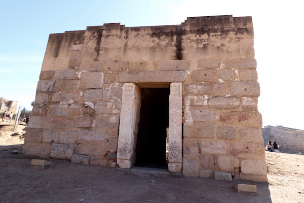 La Alcazaba Árabe, su construcción data del siglo IX, siendo levantada en 828 por Abderramán II, trazada por el arquitecto Abd Allah, inspirándose en modelos bizantinos, con un perímetro de 500 m², con muros de 10 metros de altura con 2,70 metros de grosor. Fue la sede de las dependencias administrativas de omeyas, residencia del gobernador local, tuvo función de puerta de entrada a la ciudad desde el puente romano, fortificación defensiva, etc. Es considerada como una de las más antiguas fortificaciones musulmanas de la península ibérica. Está declarada Patrimonio de la Humanidad por la Unesco, formando parte del conjunto arqueológico de Mérida. En su interior se pueden ver restos de diferentes épocas: romana, visigoda y árabe, como la calzada principal de la ciudad, la planta de una antigua mezquita, un aljibe subterránea, etc. Mérida fue dada después de la conquista cristiana a la Orden de Santiago, edificando en uno de sus extremos un convento y residencia para la Orden de Santiago, siendo hoy la sede de la presidencia de la Junta de Extremadura. Desde la alcazaba pudimos obtener unas magníficas vistas panorámicas del puente romano y el río Guadiana. Para acceder al recinto solo tuvimos que mostrar nuestro bono, donde nos lo escanearon. El ticket individual por adulto cuesta 6 € por persona. La entrada reducida es de 3 € por cada uno. Los niños hasta los 11 años, tienen la entrada gratuita. El horario de visitas en invierno desde el 2 de octubre al 31 de marzo es de lunes a domingos de 9:00 h. a 18:30 h. En verano del 1 de abril hasta el 30 de septiembre de lunes a domingos de 9:00 h. a 21:00 h. ¡No olvides!, la taquilla y el acceso se cierra a las 18:00 h. Permanece cerrado el 1 de enero, 24, 25 y 31 de diciembre.