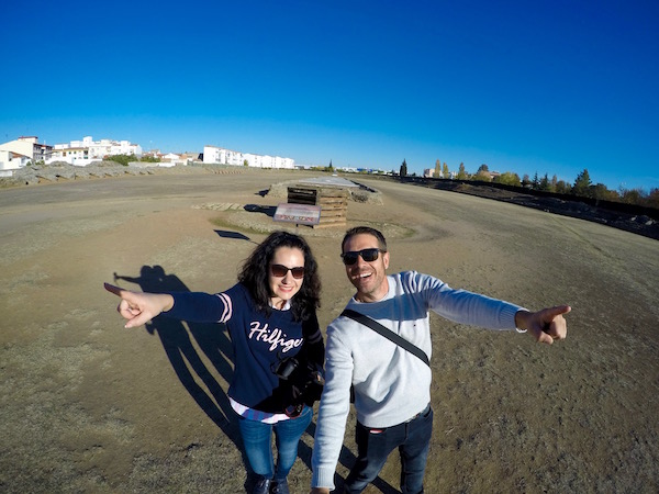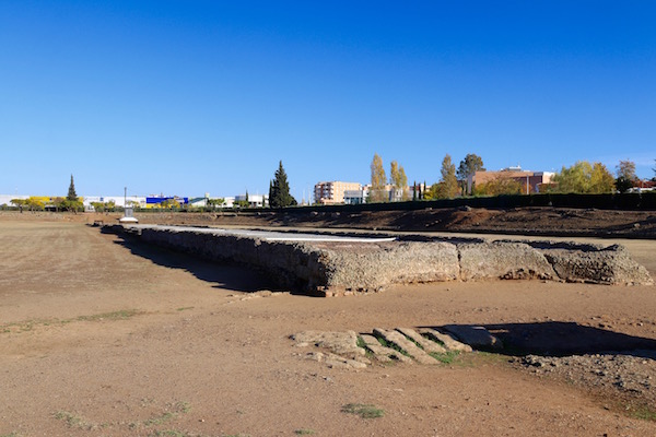 El Circo Romano de Mérida, es construido en el siglo I d.C. con 400 metros de longitud y 100 metros de ancho, tenía una capacidad para 30.000 espectadores, fue el lugar donde se llevaba a cabo las carreras de cuadrigas. Se edificó a las afueras de las murallas de la ciudad. Está considerado como uno de los circos mejor conservados del imperio y uno de los más grandes. Accedimos al centro de Interpretación del Circo, en el control de taquilla es donde mostramos nuestro ticket abono, pasamos a una sala de exposiciones donde muestra paneles y maquetas del circo romano, accedimos a otra sala donde nos proyectaron un vídeo explicativo de las carreras de cuadrigas. En esa misma sala hay unas escaleras que nos condujeron a una azotea desde donde pudimos obtener unas increíbles vistas panorámicas de todo el circo romano de Mérida.