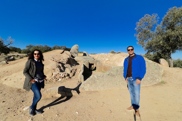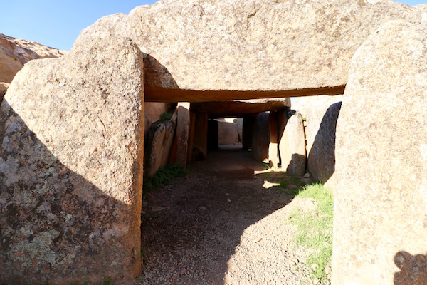 Abandonábamos la ciudad de Mérida para ir hasta el Dolmen de Lácara, situados a 25 km, tardamos en llegar unos 27 minutos con las indicaciones de google maps nos dio. El lugar está señalizado con un cartel junto a la carretera, se sitúa en la carretera que une Aljucén con la Nava de Santiago, además hay una zona habilitada para el estacionamiento de vehículos. No hay taquilla, ni nadie que controle el sitio, el acceso el libre y siempre está abierto. Por favor, intentemos de mantener el lugar limpio, nos encontramos papeles, restos de plástico por el suelo. ¡Seamos personas no animales! Una vez pasado la pequeña puerta del recinto, hay que seguir el camino hacia adelante, teniendo visible y siguiendo la vaya que delimita la zona, caminamos unos metros, encontrándonos a mano izquierda los restos de una vivienda, que está rodeada de encinas, continuamos hasta llegar a la entrada, al dolmen de Lácara. Fue construido a finales del neolítico hace unos 3000-4000 a.C. fue utilizado como cámara funeraria durante el calcolítico y la edad del Bronce, consideradas construcciones sagradas, así que las utilizaban para enterrar a los miembros de la comunidad. El dolmen posee un largo corredor cubierto de unos 20 metros de largo, dividido en tres partes, dando acceso a la cámara mortuoria de planta poligonal, con 5 metros de diámetro. Considerado como el dolmen más grande de la península.