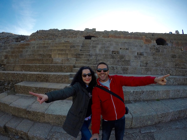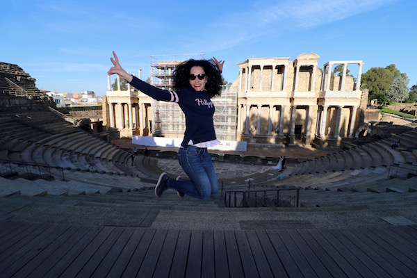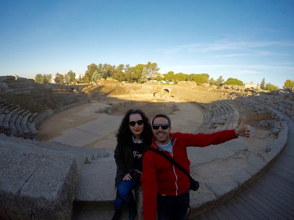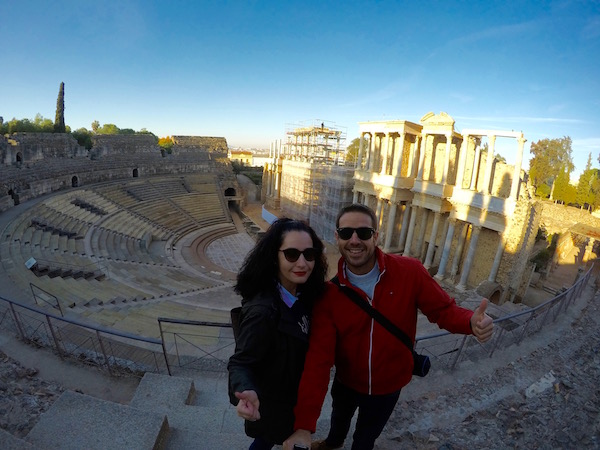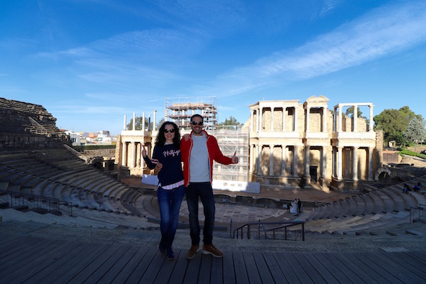 A unos pocos metros de él está el Teatro Romano de Mérida, fue levantado por la antigua Roma, en lo que fue Augusta Ermita, hoy en día Mérida, entre los años 15 a.C. y 16 a.C. por el cónsul Marco Vipsanio Agripa, yerno del emperador Octavio Augusto, sobre el cerro de San Albín. Teatro de planta latina, el graderío de tres alturas, teniendo una capacidad para unas 6.000 personas. Distribuido según rango social, en tres sectores de gradas, la inferior dedicada a los nobles de la sociedad romana, y los superiores a los esclavos, estando separados por pasillos y pequeños muros. La orchestra, semicircular de 30 metros de diámetro y rodeada por tres gradas, zona destinada al coro semicircular localizado delante de la escena. La escena con 63 metros de altura con dos cuerpos de columnas corintias, entre las columnas se pueden ver una réplica de esculturas de dioses, estando las originales en el museo de Arte Romano de Mérida. Experimentó alguna que otra reforma o remodelación en el siglo I y II d.C. El teatro se vio abandonado con la llegada del cristianismo en el siglo IV a.C. se cubrió de tierra durante siglos, quedando solo visible las partes más altas del graderío. Las excavaciones en él comenzaron en 1910 por el arqueólogo José Ramón Mélida, no fue hasta la década de los 60, cuando se vio reconstruido el frente de escena bajo el mandato de José Menéndez Pidal y Álvarez. Cuando nosotros lo visitamos estaban una parte de él cubierto de andamios. Hoy en día es el mejor conservado de Europa y se sigue usando, siendo utilizado para acontecimientos culturales y en los meses de verano en él se festeja el festival de Teatro Clásico de Mérida. Teniendo lugar la primera actuación en época moderna en el año 1933. Se ha convertido en el más antiguo festival de teatro que se celebra en España. ¡Recuerda!, para asistir a alguna actuación del festival, debes llevar un cojín, el asiento es incómodo, si eres algo friolero, no olvides llevar una chaqueta, la temperatura es mucho más fresca por la noche que por el día. ¡Recuerda!, no debes de dejarlo de visitar, es el monumento más emblemático de la ciudad de Mérida.