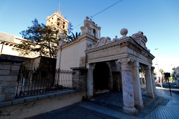Llegamos hasta la Basílica de Santa Eulalia, la primera edificación data del siglo IV, siendo uno de los primeros templos cristianos de Hispania. Lo que hoy podemos ver corresponde a los siglos XIII y XIV, levantada sobre los restos de la antigua basílica. La cripta acoge restos romanos y visigodos. No pudimos acceder a la iglesia porque estaba cerrada, únicamente está abierta en horario de culto. La dirección es Avenida de Extremadura nº 11.