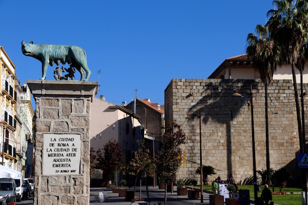 Con mapa en mano, nos fuimos hasta la Alcazaba Árabe, justo antes de entrar a la alcazaba se encuentra una rotonda que está presidida por la réplica de una escultura de la loba Capitolina, fue un regalo de la ciudad de Roma a Mérida.