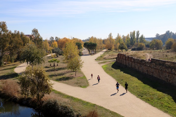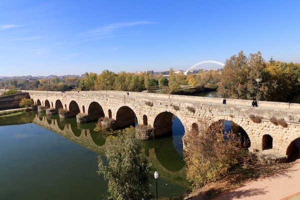 Al salir del recinto de la alcazaba, tocaba caminar por el emblemático Puente Romano de Mérida, edificado durante el siglo I a.C. situado sobre el río Guadiana, considerado como uno de los mejores conservados de toda la península. Se ha visto reconstruido en varias ocasiones, siendo la última en el siglo XIX. Hoy en día conserva 721 metros de longitud, de los 755 existentes y 60 arcos de medio punto, de los 62 que tuvo, tiene 12 metros de altura. Ha estado en uso para vehículos y peatones hasta finales del siglo XX, actualmente es solo peatonal. Forma parte del conjunto arqueológico de Mérida. Ubicado al lado de la alcazaba árabe. El acceso a él es gratuito.