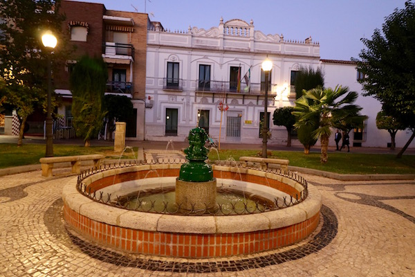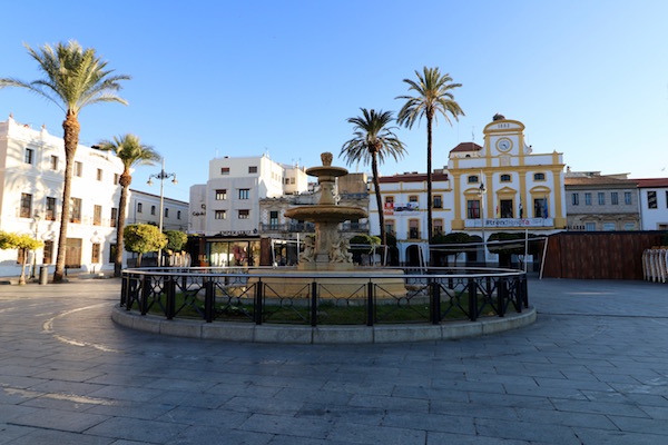 Salimos del hotel, justo enfrente está la Plaza de España, tiene origen medieval, sus dos funciones principales han sido mercantil y centro de festividades, a lo largo de los siglos. Hoy en día sigue siendo un lugar muy concurrido tanto por residentes como turistas y viajeros. Presidida por una fuente neobarroca de mármol que data de finales del siglo XIX, la plaza está rodeada de importantes edificios como: el ayuntamiento, la catedral de Santa María la Mayor, el círculo Emeritense, la casa de los Pachecos y los palacios de los Mendoza y el de la China, además de haber bares, restaurantes, cafeterías.