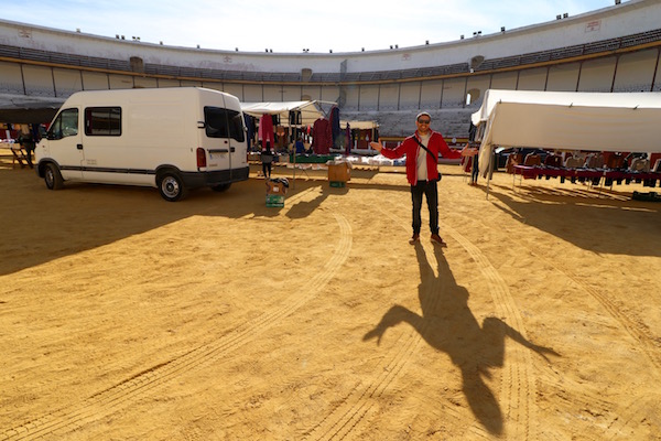 A unos pocos metros del lugar se encuentra la Plaza de Toros de Mérida, fue levantada en el siglo XX, siendo inaugurada el 5 de julio de 1914. Tiene tres pisos donde están los tendidos, las gradas y las andanadas, también cuenta con corrales, chiqueros, patio de caballos y de cuadrillas, enfermería, capilla y taquilla. Dispone de una capacidad para 8.700 espectadores, de 2ª categoría. Nos sorprendió el sábado por la mañana verla alrededor y en su interior colocado un mercadillo de fruta, verduras, ropas, etc. Nunca antes habíamos visto algo semejante. Situada en el cerro de Albín, se encuentra en la Calle de Vía Ensanche s/n.