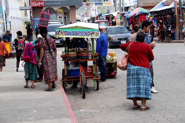 Aquí vimos a las mujeres indígenas con el traje regional, el güipil (blusa) con flores bordadas a mano y a los hombres con el pantalón corto y chaqueta de lana negra. El horario del mercado hay todos los jueves y domingos a partir de las 7:00 h de la mañana hasta las 17:00 h.
