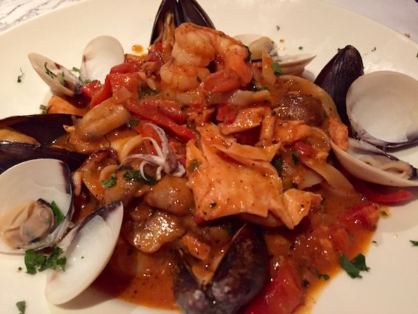 - Espaguetis frutos del mar, Restaurante Tre Fratelli.