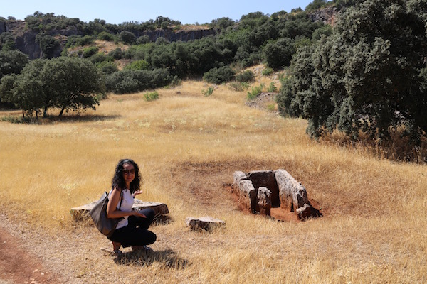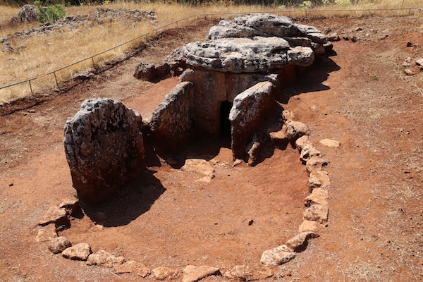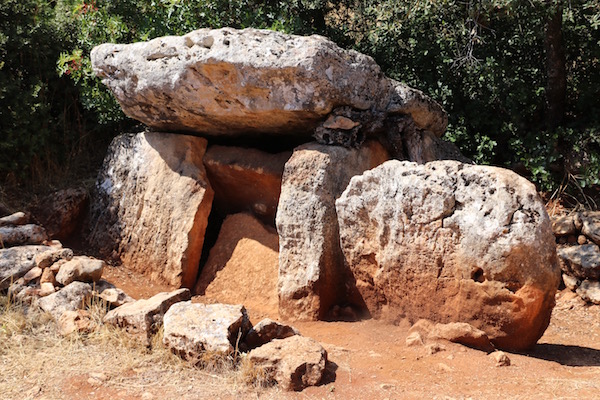 Llegamos al primer sepulcro megalítico, data de 4.500 a.C. de talla trapezoide. En el lateral de uno de los ortostatos de la cámara, en su lado interior, se ve el resto que queda de un mamelón. También pasamos por otros sepulcros megalíticos.