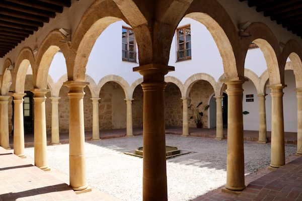 Entramos de nuevo a Montefrío y emprendimos una caminata de unos pocos metros hasta llegar al Convento de San Antonio es de finales del siglo XVIII, construido a las afueras del pueblo, sobre el cerro del Calvario, el lugar es conocido como “Camino de las fuentes de Íllora” el terreno fue donado por el ayuntamiento. Era la vivienda de los franciscanos, una comunidad religiosa dedicada a la meditación. El claustro tenía la función de ser el centro espiritual de los franciscanos, alrededor del claustro se abrían las diferentes estancias comunes: sala de capítulo de culpas, la de profundísimo, la de capitular, el refectorio, y en la planta superior se encontraban las celdas de los monjes. También tenían una huerta, y una zona destinada al almacenamiento del grano. La iglesia se encontraba en uno de sus laterales. Los franciscanos abandonaron el convento con la desamortización de Mendizábal. Con el paso de los años el convento de San Antonio paso a ser del Estado. El claustro se convirtió en una fábrica de harinas, por lo que hoy en día muchos lugareños lo llaman aún al lugar como la “Máquina” Luego fue una casa de vecinos y ahora es un centro donde se realizan bodas, exposiciones, eventos, etc. Hoy en día del convento de San Antonio solo se conserva el claustro y la iglesia. Únicamente se puede visitar en su interior cuando hay una exposición, eventos o realizando el recorrido con el tren turístico. Situado en la Plaza del Convento núm. 2.