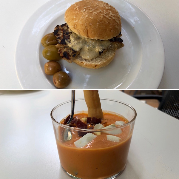 - 1-hamburguesa de atún y 2-salmorejo.