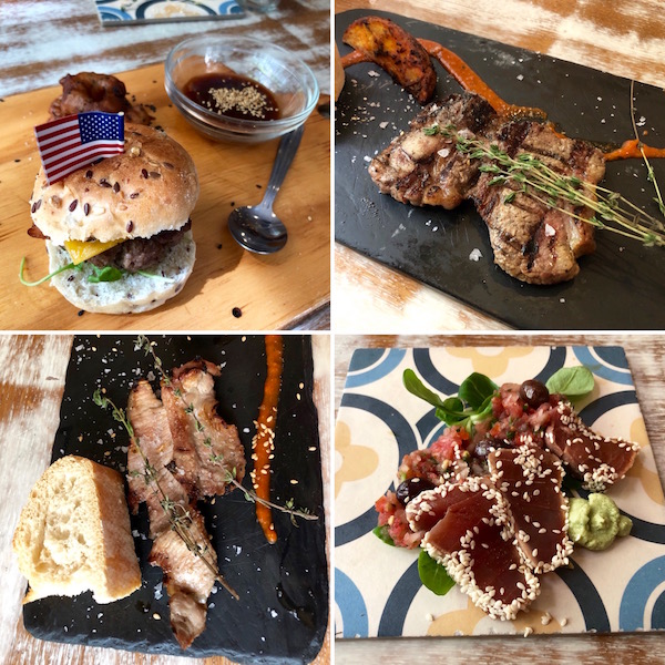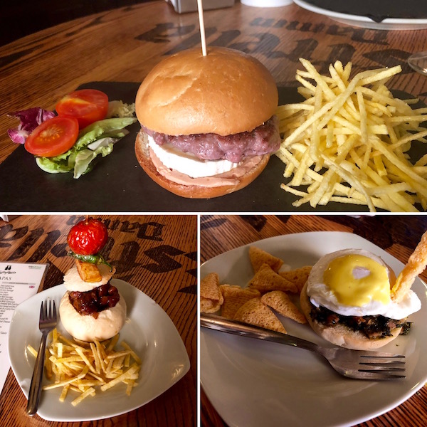 - 1-taco hamburguesa Angus Black, 2-tapa solomillo estilo mozárabe, 3-tapa de huevo pocho a la florentina.