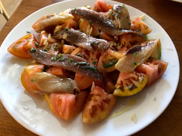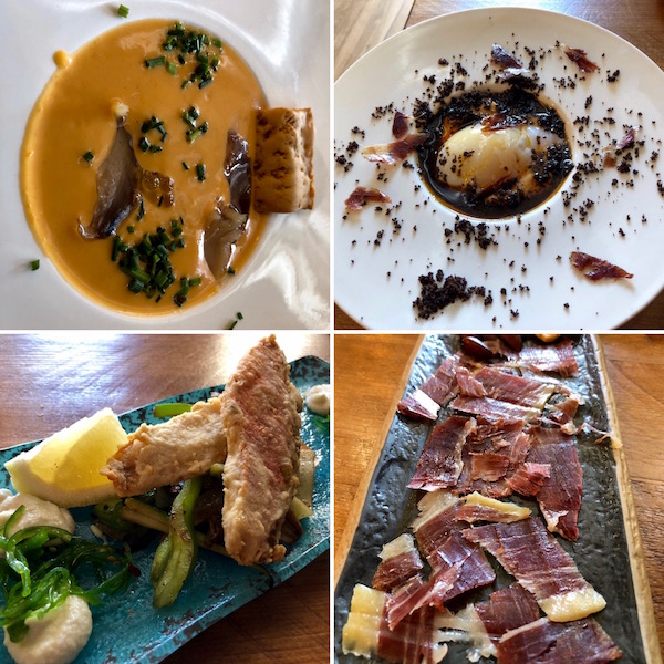 - 1-Tapa salmorejo, 2-alpujarreño, 3-salmonete con ajo blanco, 4-jamón 5 jotas.