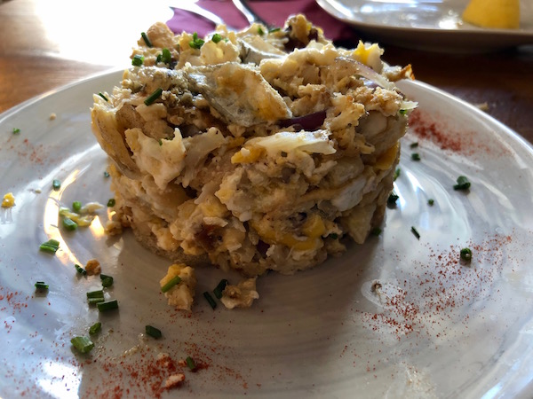 - Tapa canelón de bacalao, hamburguesa de jibia, aguja, pincho de pescado.