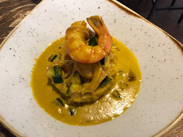 - Pincho cous cous con langostinos al aroma del curry.