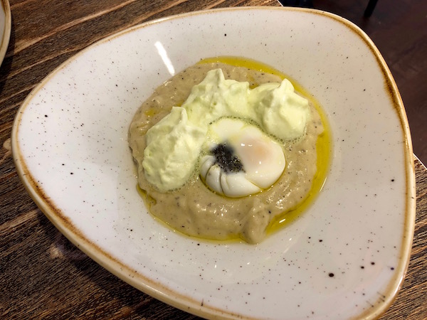 - Pincho de huevo a 63 sobre patatas y trufa.