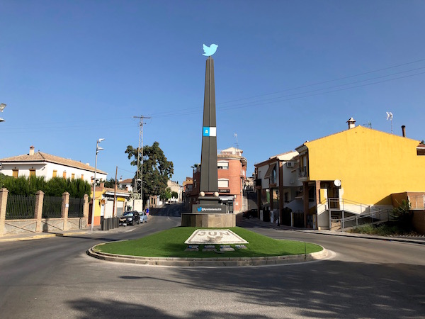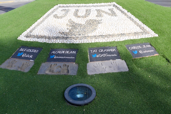 Unos metros más adelante está una rotonda donde hay un Obelisco con el símbolo de la red social twitter, a los pies de él se pueden ver diferentes placas con el nombre y twitter de Dick Costado, la alcaldía de Jun, Tat Granada y Carlos Jean, cada una con la silueta de las dos manos, vamos podríamos decir que son las placas de la fama de Jun.