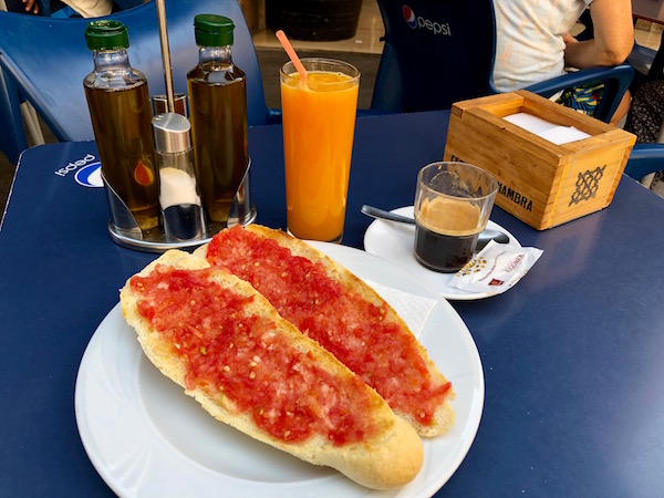 Hicimos una parada en las visitas para desayunar en el Bar Central donde pedimos dos medias tostadas de tomate con aceite, un café solo y un zumo de naranja. Pagamos un total de 4,40 €. Abierto de miércoles a lunes de 7:00 h a 24:00 h, permanece cerrado los martes. La dirección es Calle del Comandante Lázaro núm. 1.