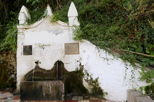 El Pilar del Mono fuente de dos caños con un pilar rectangular en su base. Pudimos apreciar como aún la gente viene a llenar sus botellas vacías de esta agua. El acceso es gratuito, espacio al aire libre. Ubicada en la antigua Carretera N-323.