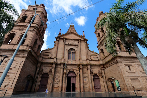 Salimos del hotel y justo enfrente comenzamos visitando la Catedral, la Vieja Catedral construida por Fray Diego de Porres, en época del Virrey español Francisco Álvarez de Toledo, en el año 1770 se reconstruyó la iglesia por orden del obispo Ramón de Herbosos, la ejecución de las obras la realizó Antonio Lombardo. Ese templo a lo largo de la historia pasó por muchas reformas hasta que se edificó una nueva iglesia, en la época del Mariscal Andrés de Santa Cruz en 1838, la vieja iglesia fue sustituida por un nuevo templo llamándose catedral Metropolitana Santa Cruz de la Sierra, también es llamada basílica menor de San Lorenzo. En 1845 fue diseñada por el arquitecto Felipe Bertres, cambiando a un estilo neoclásico por Galés León Musnier, y siendo acabada en 1915 por Víctor Querezolo. Edificada en ladrillo y cal. La iglesia quedó consagrada el 18 de agosto del 1915. Tiene dos torres de ladrillo, una de ellas tiene un reloj, ambas son visibles desde gran parte de la ciudad. En su altar hay elementos ornamentales en plata traídos de la misión jesuítica de San Pedro de Moxos. El acceso es gratuito, abierta en horario de culto. En su interior está del Museo Catedralicio, en él se pueden ver objetos de plata, pinturas, reliquias religiosas, etc. El horario de visitas es de martes a jueves de 10:00 h a 12:00 h, por la tarde de 16:00 h a 18:00 h.