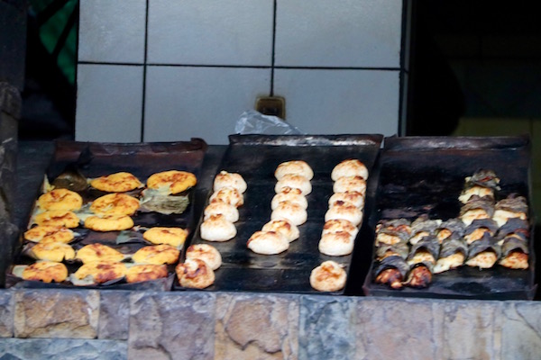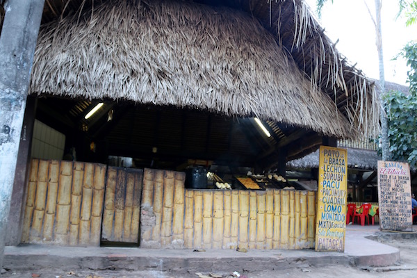 Al terminar la visita, cogimos un taxi, le pedimos a él que se detuviera unos minutos en Las Cabañas del Río Piraí estas se encuentran a las orillas de la playa del río Piraí, en este paraje podrás degustar platos típicos de la comida típica cruceña: locro (guiso) majaditos (arroz con charque, huevo y plátano frito) patasca (caldo), etc.