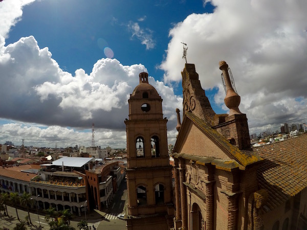 Se puede subir a través de unas escaleras, algo empinadas, a la Torre de Reloj, vimos el mecanismo del reloj, además de obtener unas increíbles vistas panorámicas de la ciudad de Santa Cruz de la Sierra. Para ello tuvimos que pagar una entrada de 3 bolivianos por persona (0,38 € aprox.) Está frente a la Plaza 24 de septiembre, la dirección es Calle Ayacucho esquina Calle René Moreno, Santa Cruz de la Sierra.